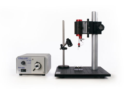 The light source can be either high intensity LEDs (which work very well) or QTH lamp. The QTH lamp is useful both by itself and for a source of wavelength specific SPS.