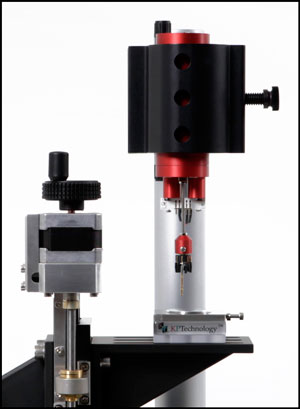 The sample can be retracted for sample changing or the tip can be manually retracted 25mm too. Both the manual and motorised translators mean that, with minimum fuss a range of sample sizes can be accommodated.